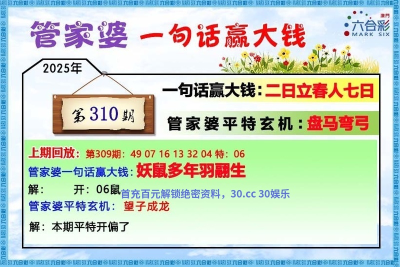 309期:单双+两肖【单肖+龙】开:鼠06中
