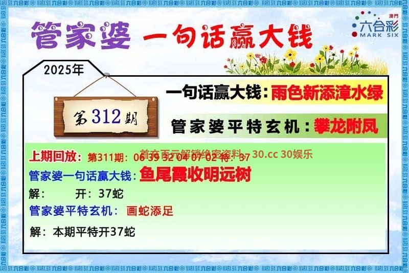 312期:单双+两肖双肖+猪蛇】开:龙14中
